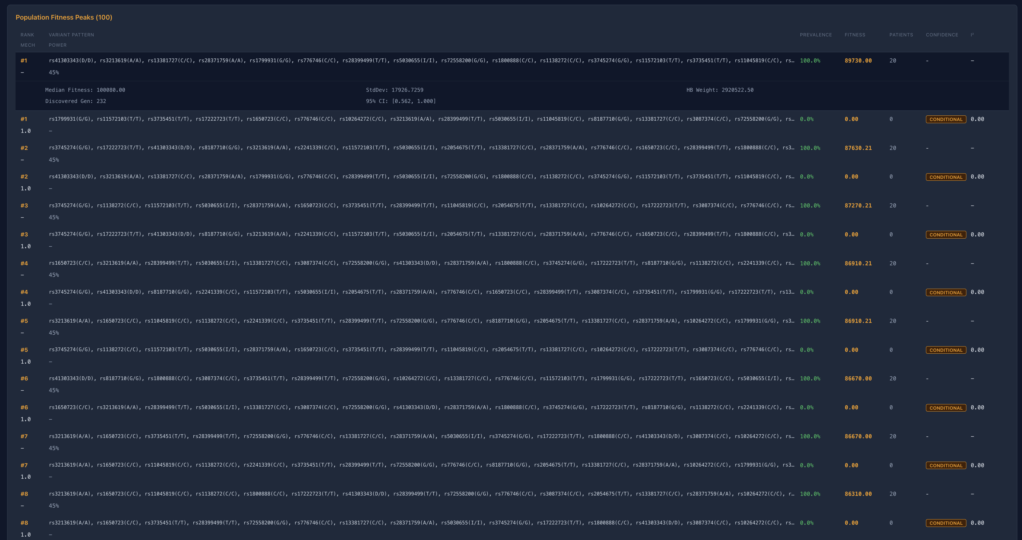 1,257,095 clinical logic objects — encoding FDA drug-gene interactions, CPIC prescribing guidelines, PharmGKB annotations, and Hardy Bridge-validated findings.